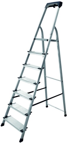 Стремянка алюминиевая с широкой ступенью и органайзером Новая Высота 7 ступеней (арт. 2118107)