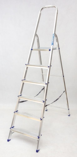 Стремянка алюминиевая анодированная С широкими ступенями Эйфель 6 ступеней (арт. Триумф 106)