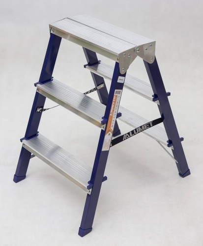 Двухсторонняя стремянка стальная окрашенная с алюминиевыми ступенями 3 ступени (арт. MD8203)