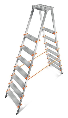 Стремянка алюминиевая садовая профессиональная с широкой ступенью Новая Высота 8 ступеней (арт. 3199108)