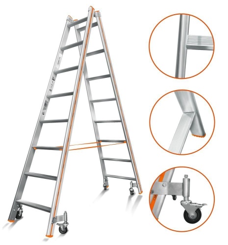 Двухсторонняя стремянка алюминиевая Эйфель 8 ступеней (арт. Комфорт - Профи 208 Роллер)