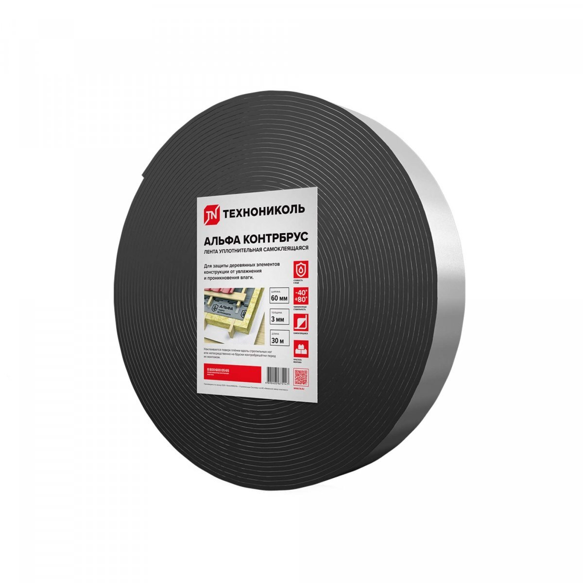 Лента уплотнительная самоклеящаяся ТехноНИКОЛЬ АЛЬФА КОНТРБРУС 60 мм 30 м
