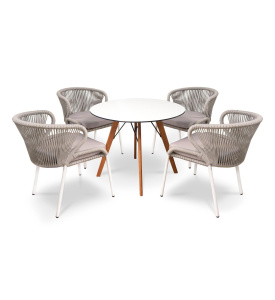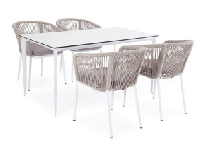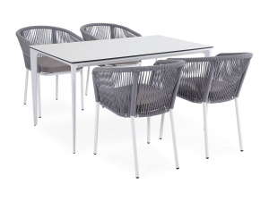 "Малага" обеденная группа на 4 персоны со стульями "Марсель", каркас белый, роуп светло-серый