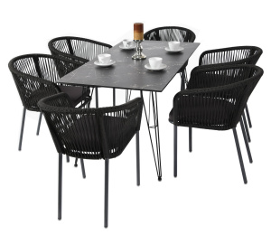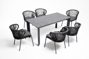 "Венето" обеденная группа на 6 персон, со стульями "Милан", каркас темно-серый, цвет темно-серый
