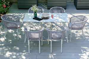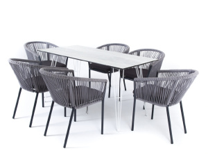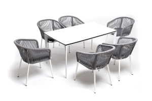"Малага" обеденная группа на 6 персон со стульями "Марсель", каркас белый, роуп светло-серый