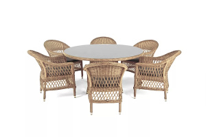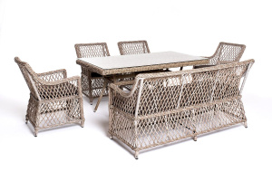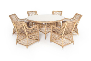 "Катания" обеденная группа плетеная на 6 персон, цвет бежевый