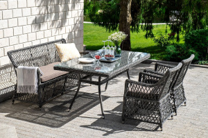 "Катания" обеденная группа плетеная на 6 персон, цвет графит