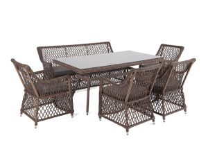 "Катания" обеденная группа плетеная на 6 персон, цвет коричневый