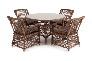 "Катания" обеденная группа плетеная на 4 персоны, цвет коричневый