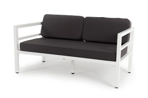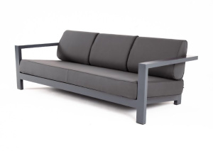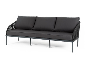 "Канны" диван плетеный из роупа (веревки) трехместный, цвет темно-серый, ткань интерьерная