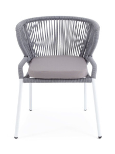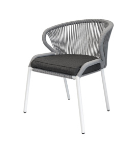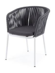 "Бордо" плетеный стул из роупа (веревки), цвет серый, белый каркас, подушка SAVANA Grafit