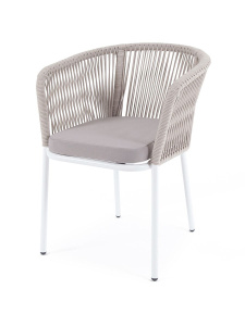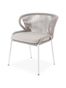 "Марсель" плетеный стул из роупа (веревки), каркас белый, цвет бежевый