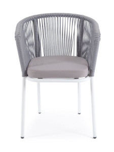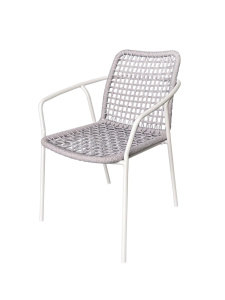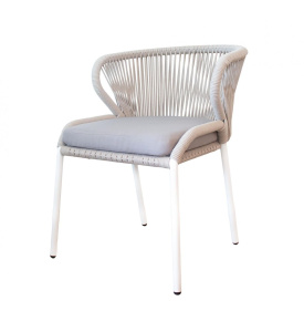 "Марсель" плетеный стул из роупа (веревки), каркас белый, цвет светло-серый