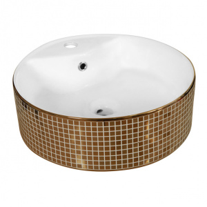 Раковина на столешницу FLUMEN Milan 46,5 см круглая с отверстием золото