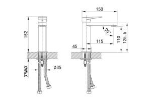- Расположение смесителя без места под смеситель