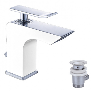 Смеситель для раковины LEMARK Contest каскадный с донным клапаном хром, белый