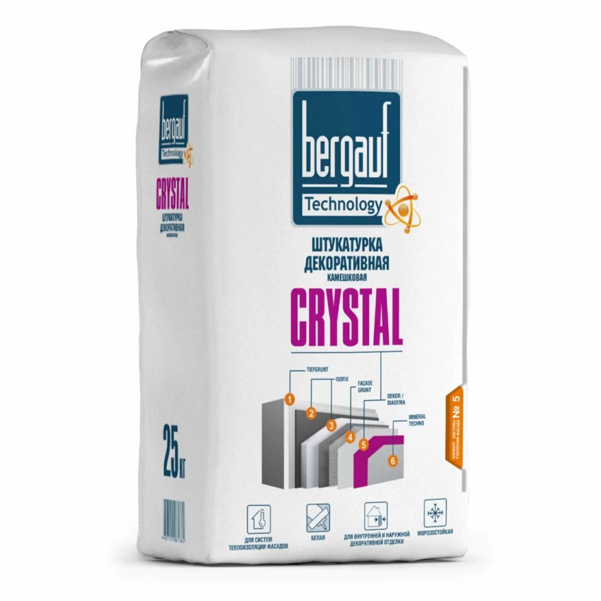 Смесь сухая штукатурная декоративная BERGAUF Crystal камешковая зерно 2 25 кг